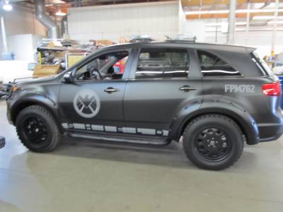 We began most of the cars shown on film from a stock Acura SUV and turned each of them into mean looking tactical vehicles. We customized the suspension for each car for off-road travel and front bumpers for their tactical, police cruiser look. We also customized the paint job on each vehicle to show the iconic eagle symbol of the Agents of Shield.